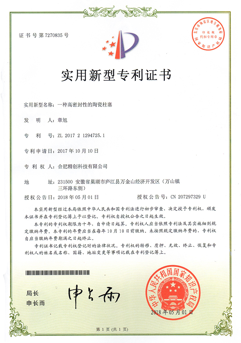 (2018實(shí)用新型)一種耐磨陶瓷柱塞